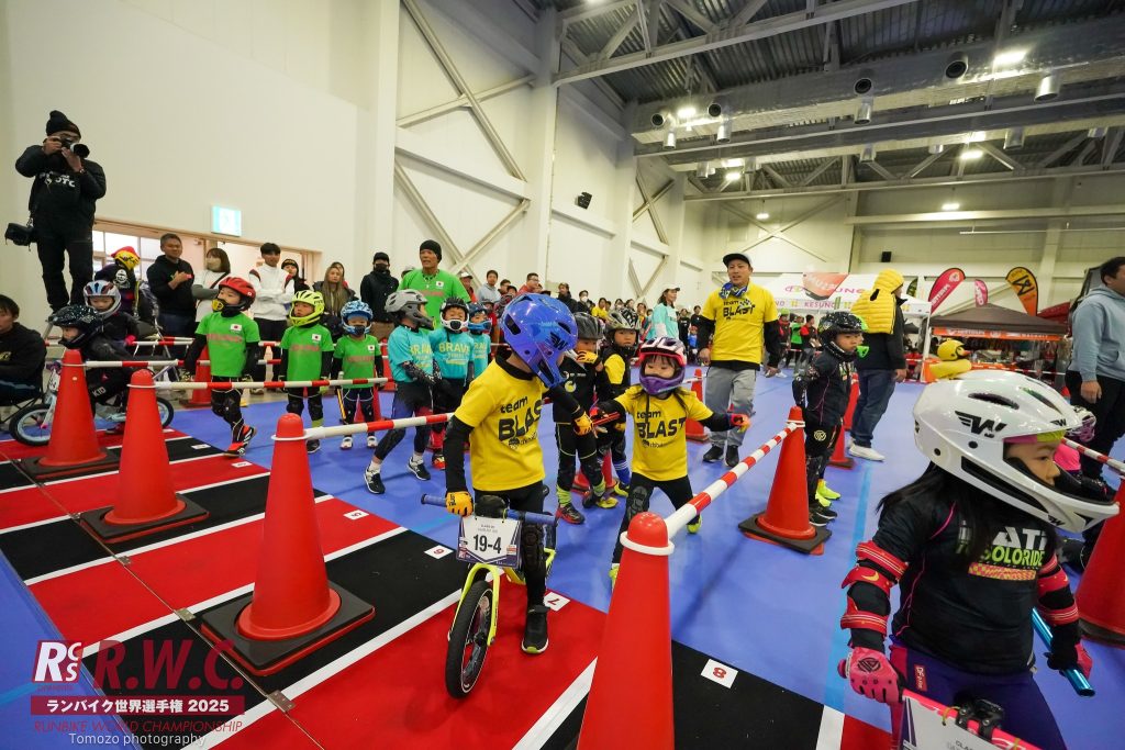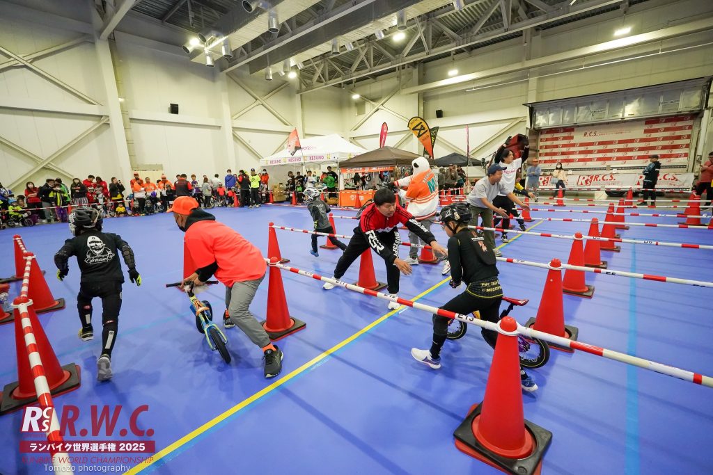 1チームあたり4名でのリレー形式の団体戦「ランバイクリレー」となります。